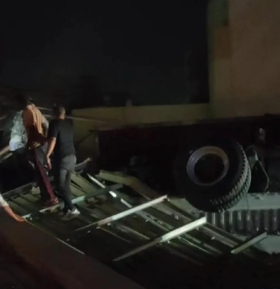 تريلا تدهس سيارة ميكروباص على الطريق الدائرى بالمعادى ،