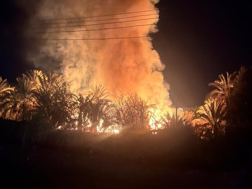 اندلاع حريق بأشجار النخيل فى قرية عين السيليين فى الفيوم