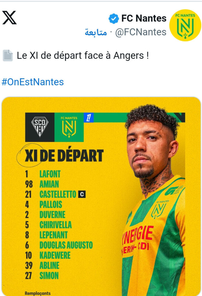 تشكيل نانت أمام أنجيه في الدوري الفرنسي