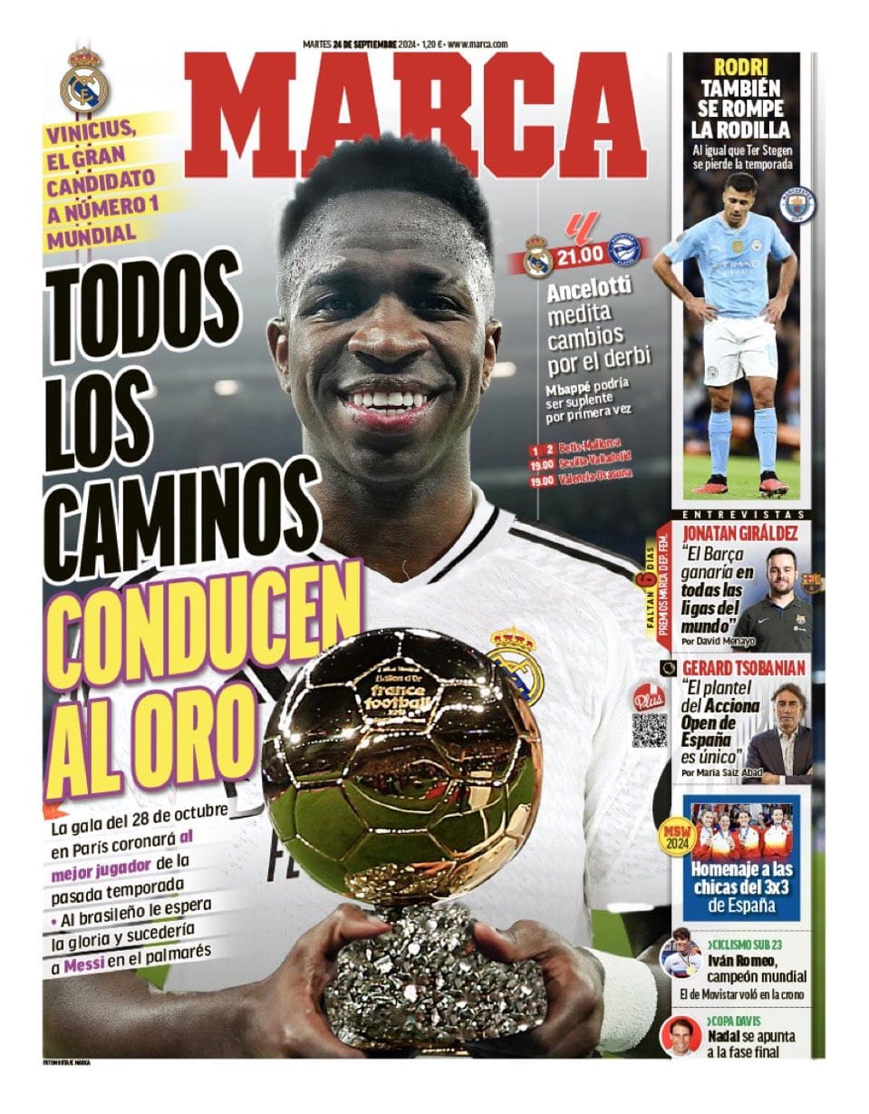 وعنونت صحيفة ماركا “كل الطرق تؤدي إلى الذهب من أجل فينيسيوس جونيور.. وفينيسيوس يلمس الذهب”.