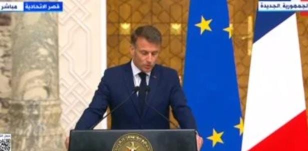 وأضاف الرئيس الفرنسي خلال مؤتمر صحفي مشترك مع السيد الرئيس عبد الفتاح السيسي: “يجب استئناف المفاوضات بشأن غزة دون تأخير.. ونثمن الجهود المصرية لدعم تهدئة الأوضاع في قطاع غزة”.