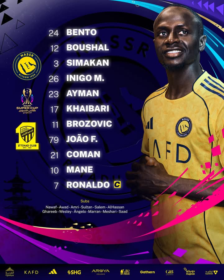خط الهجوم: أيمن يحيى، ساديو ماني، كريستيانو رونالدو