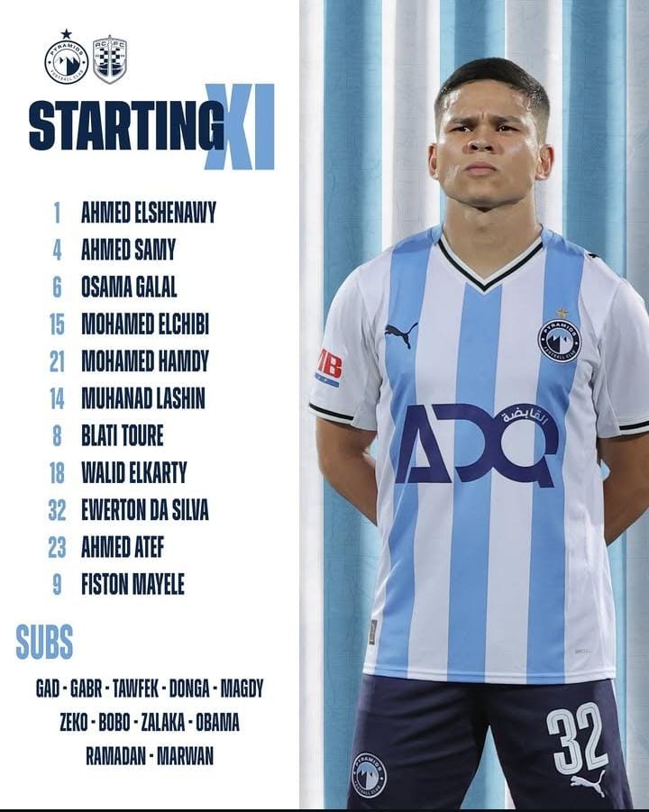 أما قائمة البدلاء فضمت: محمود جاد – علي جبر – كريم حافظ – أحمد توفيق – محمود دونجا – عبد الرحمن مجدي – مصطفى زيكو – محمد رضا بوبو – محمود زلاكة – رمضان صبحي – يوسف أوباما – مروان حمدي.