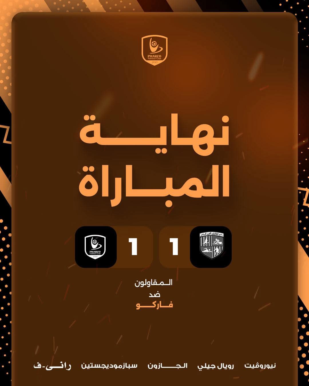 المقاولون تقدم أولاً عن طريق محمد يوسف أبو جودة في الدقيقة 45+3، بعدما استغل كرة عرضية داخل منطقة الجزاء ليضعها في الشباك قبل نهاية الشوط الأول. وفي الشوط الثاني، كثف فاركو ضغطه الهجومي حتى تمكن رامز مدحت من تسجيل هدف التعادل في الدقيقة 79 بتسديدة لم ينجح الحارس في إيقافها.