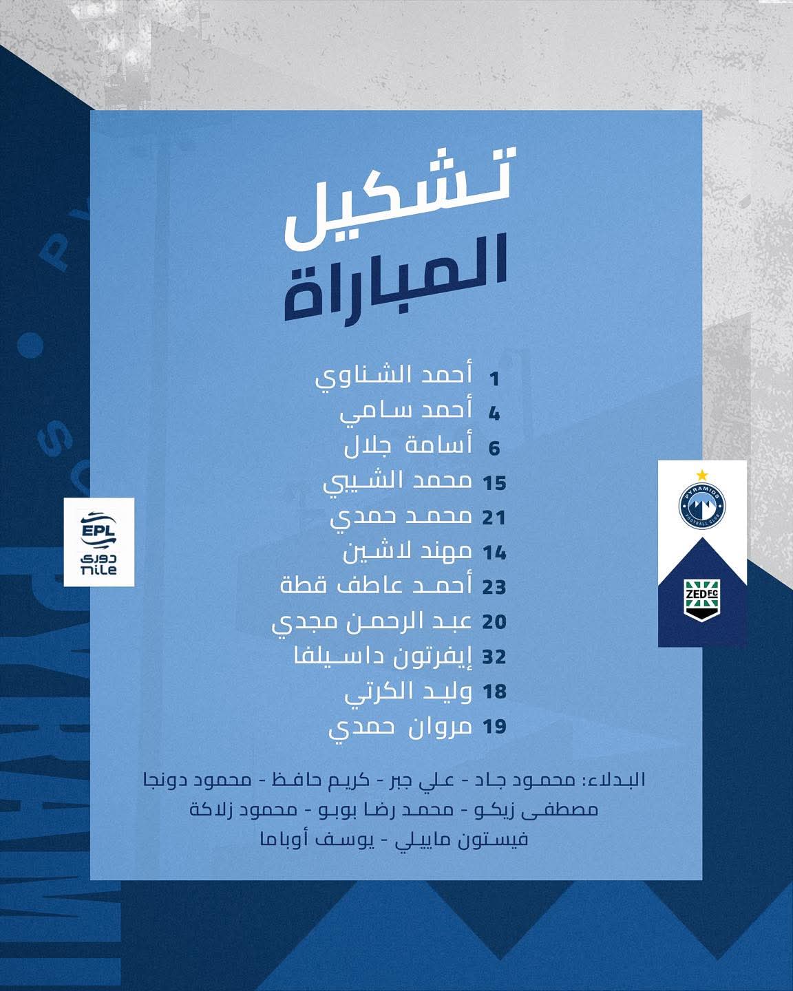 وجاء تشكيل بيراميدز كالتالي: