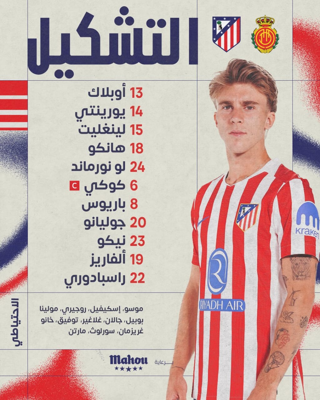 ويأمل أتلتيكو مدريد في تحقيق الفوز ومواصلة الضغط على منافسيه في صراع القمة، بينما يسعى ريال مايوركا لفرض مفاجأة وخطف نقاط ثمينة خارج ملعبه.