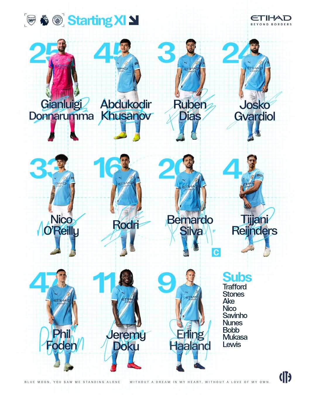 خط الهجوم: فيل فودين – جيريمي دوكو – إيرلينج هالاند.