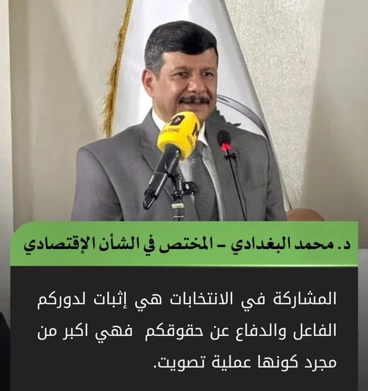 الدكتور محمد البغدادي: المشاركة في الانتخابات مسؤولية وطنية ودليل وعي الشعب بدوره في صناعة المستقبل