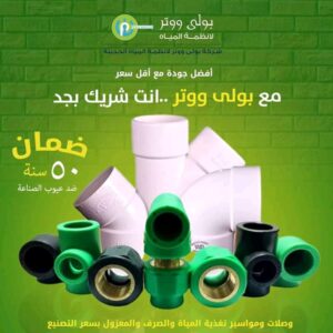 تعد شركة poly water إحدى الشركات البارزة فى صناعة أدوات السباكة بداية من التأسيس إلى  ان تنتهى بالتشطيب المتكامل للإنشاءات المعمارية  تعمل هذه الشركة برئاسة أ/أسامة عدلى رئيس مجلس إدارة الشركة وتتفرع فروعها فى جميع أنحاء جمهورية مصر العربية ويعد منتجاتها من إحدى المنتجات القيمة فى أسواق التجارة حيث تختلف أسعارها عن أسعار الشركات الأخرى بنسبة تتراوح بنسبة خصم تصل إلى 25% مقارنة باسعار الشركات الأخرى.