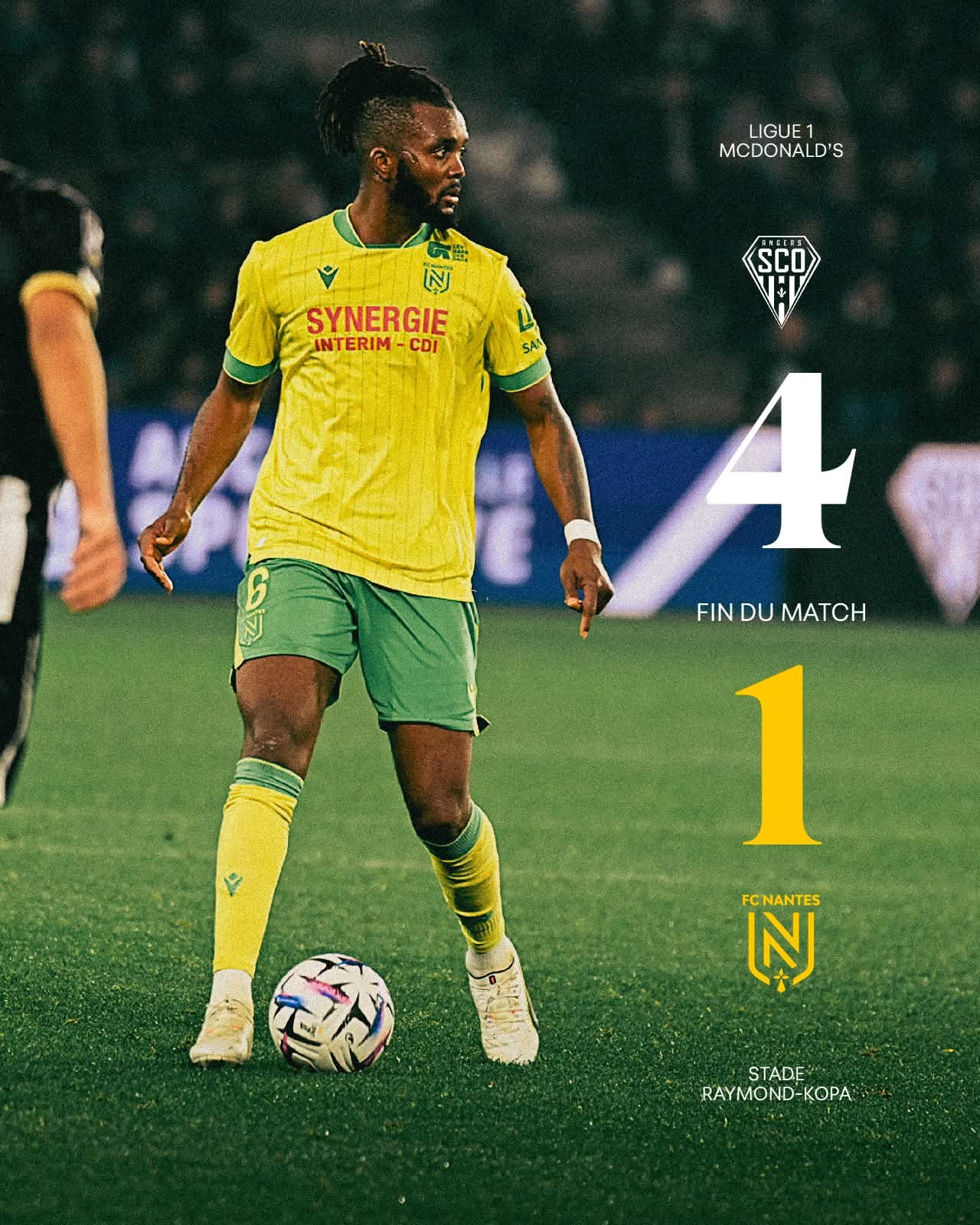 سقط نادي نانت بنتيجة 4-1 أمام مضيفه أنجيه في المباراة التي جمعتهما مساء الجمعة على ملعب ستاد ريموند كوبا ضمن منافسات الجولة السادسة عشرة من الدوري الفرنسي (ليغ 1) موسم 2025-2026.
