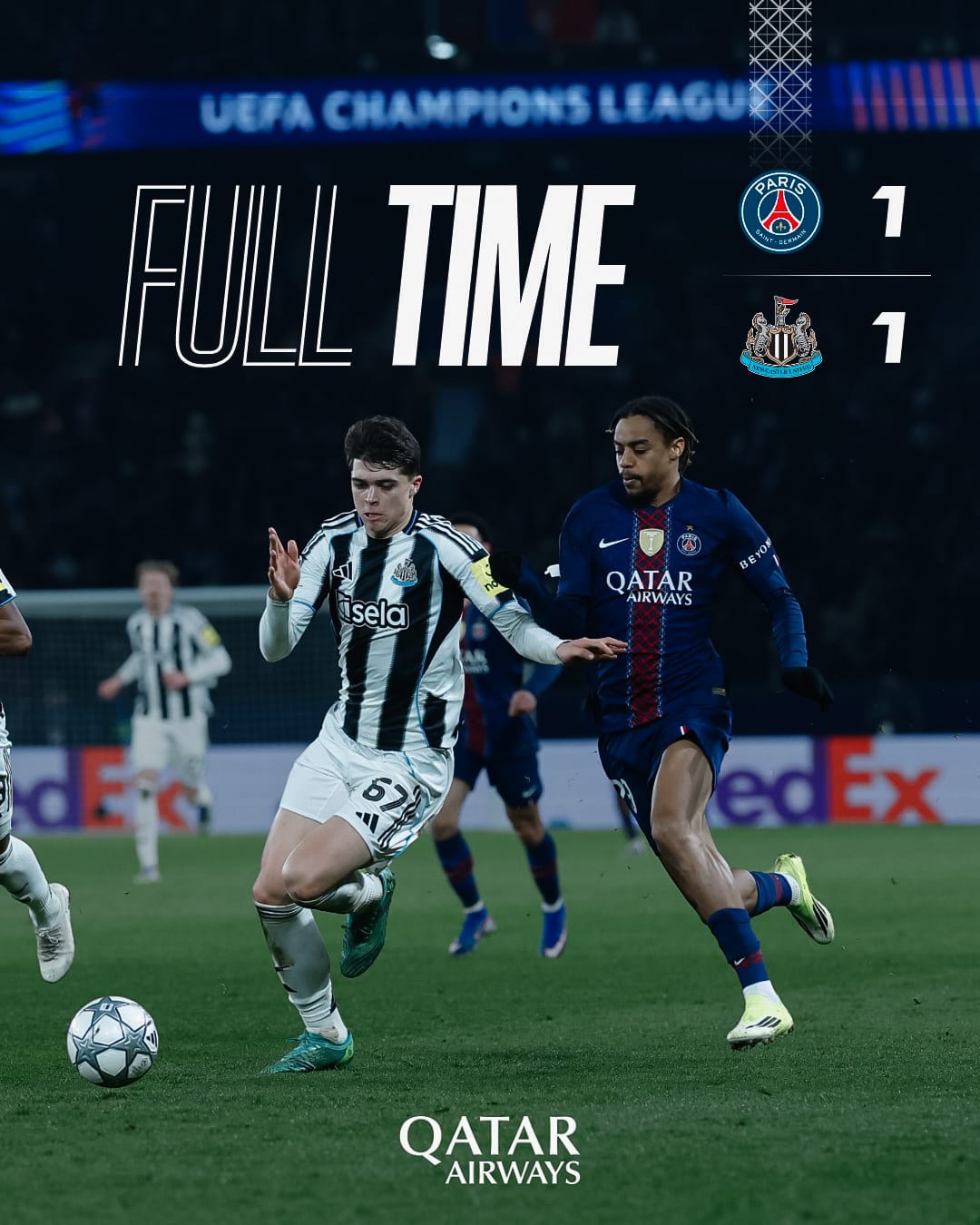 مفاجأة من العيار الثقيل…باريس سان جيرمان ونيوكاسل يقصيا بعضهما البعض بعد التعادل 1-1