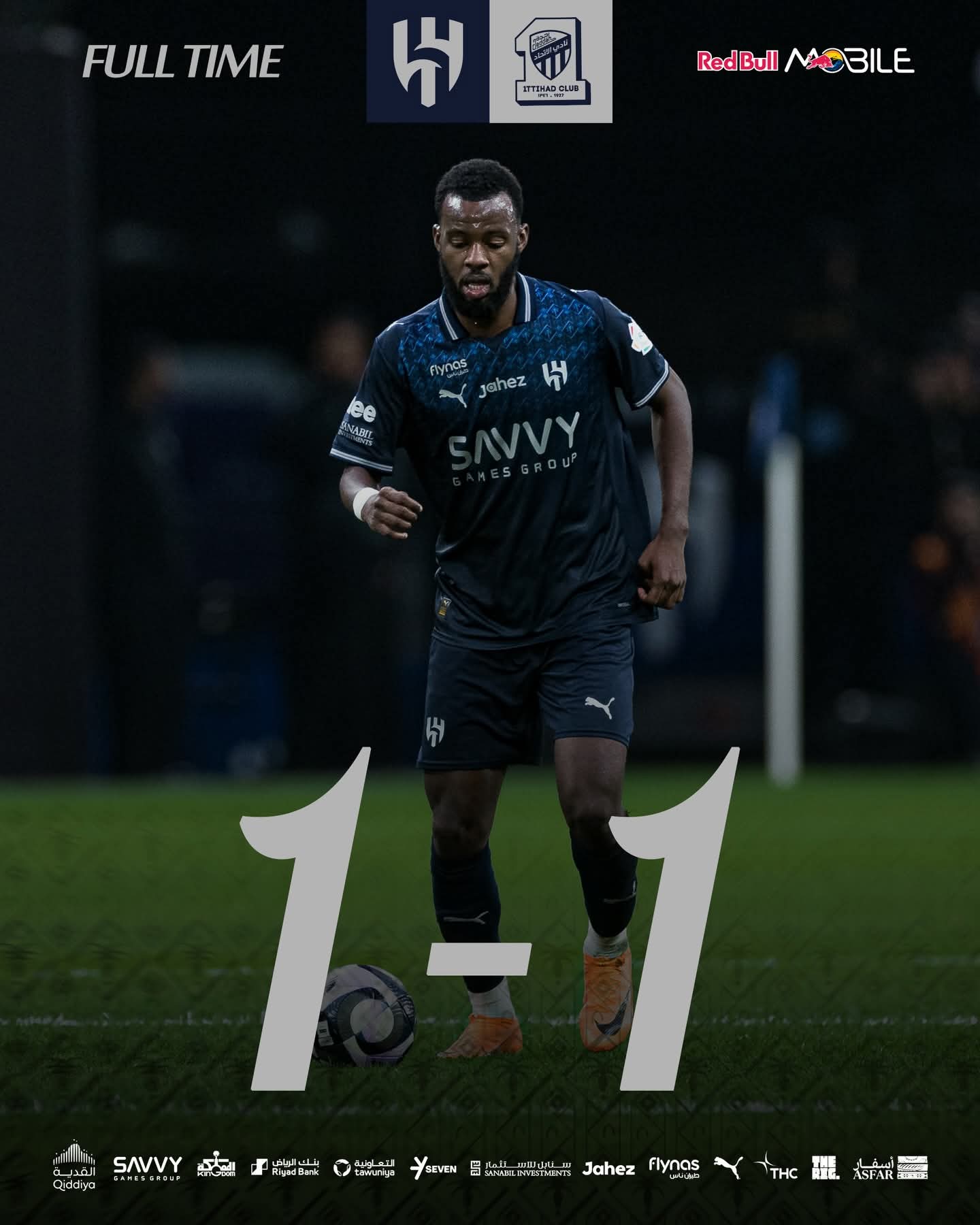 انتهت قمة الجولة الثالثة والعشرين من منافسات دوري روشن السعودي لموسم 2025-2026 بالتعادل الإيجابي بهدف لكل فريق بين الهلال واتحاد جدة، في اللقاء الذي جمع الفريقين مساء اليوم السبت على ملعب المملكة أرينا، في مواجهة قوية اتسمت بالإثارة والندية بين الفريقين.