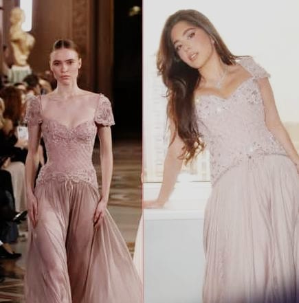 ظهرت مايان السيد بشكل مبدع حيث نسقت فستانها مع مجوهرات بسيطة من قلادة ماسية وأقراط صغيرة وخاتم مميز على شكل وردة وهذه الإطلالة أبرزت جمالها وأناقتها، وجعلتها واحدة من أجمل الفنانات في الحفل.