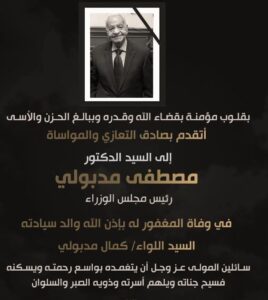 أسرة موقع وجريدة نيوز بالعربي تقدم خالص العزاء والمواساة إلى الدكتور مصطفى مدبولي رئيس الوزراء