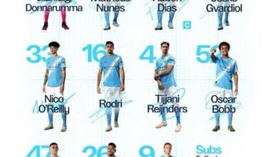 التشكيل الرسمي لمانشستر سيتي أمام مانشستر يونايتد في ديربي مانشستر